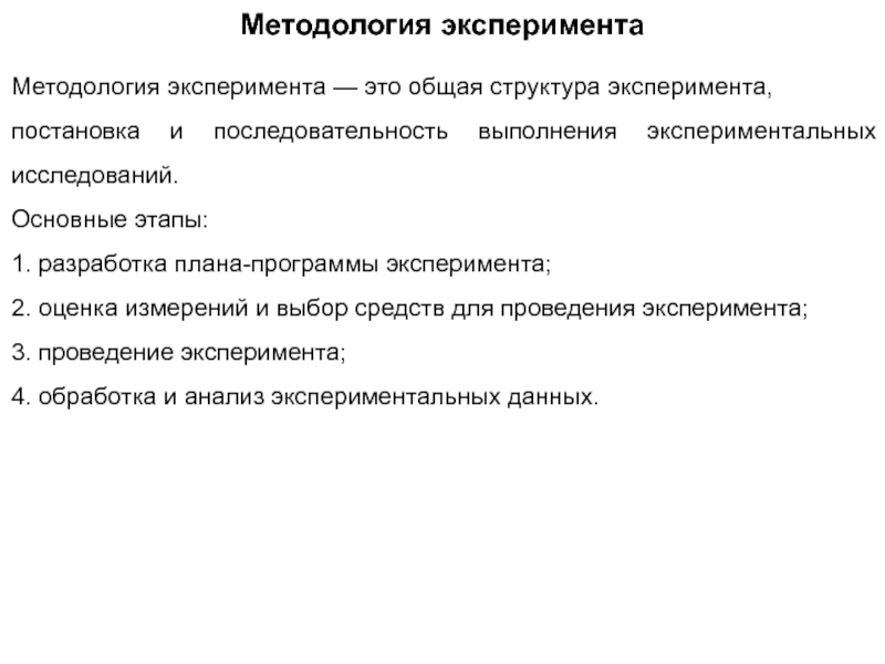 Слайд 9Методология эксперимента — это общая структура эксперимента,
