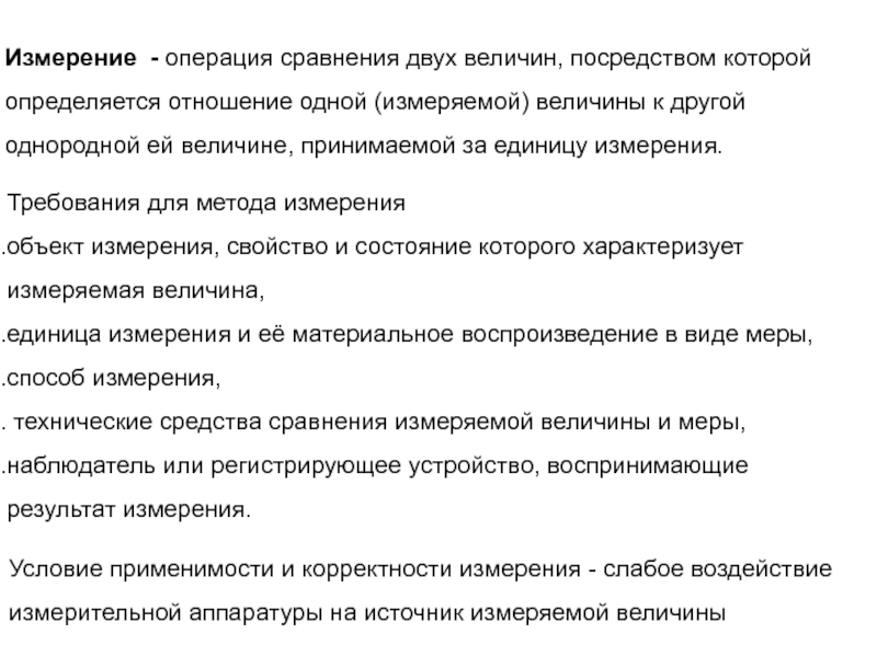 Требования для метода измерения