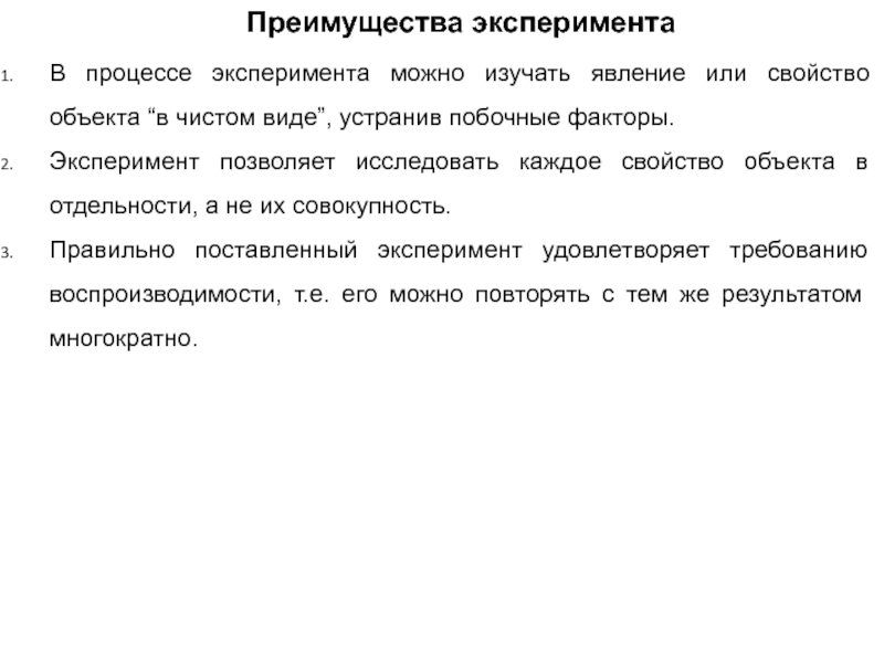 Слайд 7Преимущества эксперимента