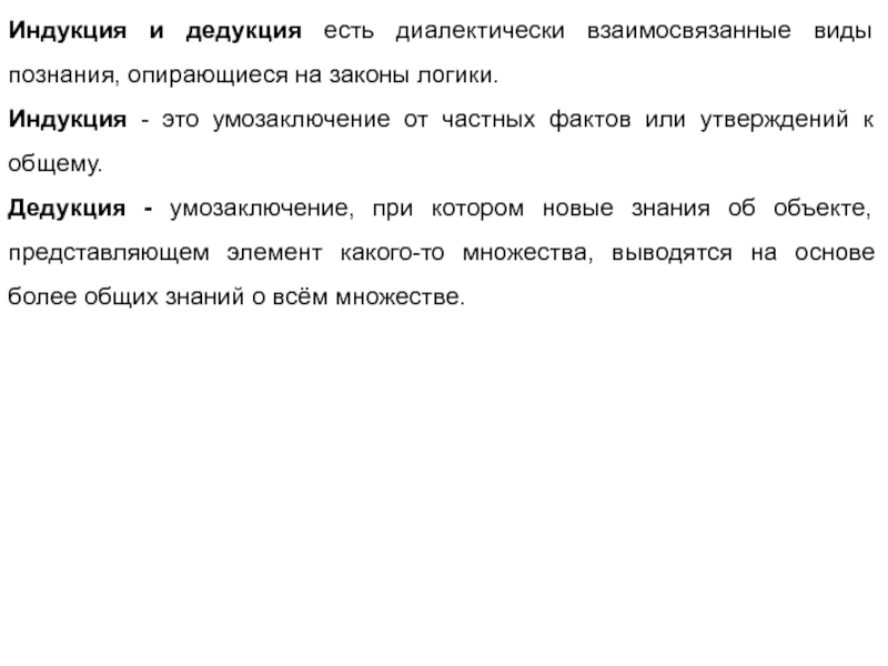 Слайд 13Индукция и дедукция есть диалектически взаимосвязанные виды познания, опирающиеся на