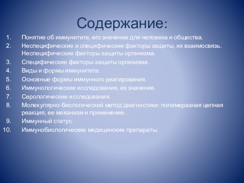 Факторы: 1) обеспечивающие неспецифическую резистентность (устойчивость) организма к антигенам независимо