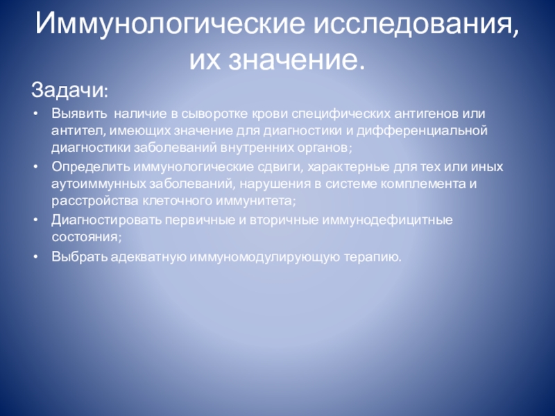 Определить иммунологические сдвиги, характерные для тех или иных аутоиммунных заболеваний, нарушения в системе комплемента и расстройства клеточного иммунитета;
