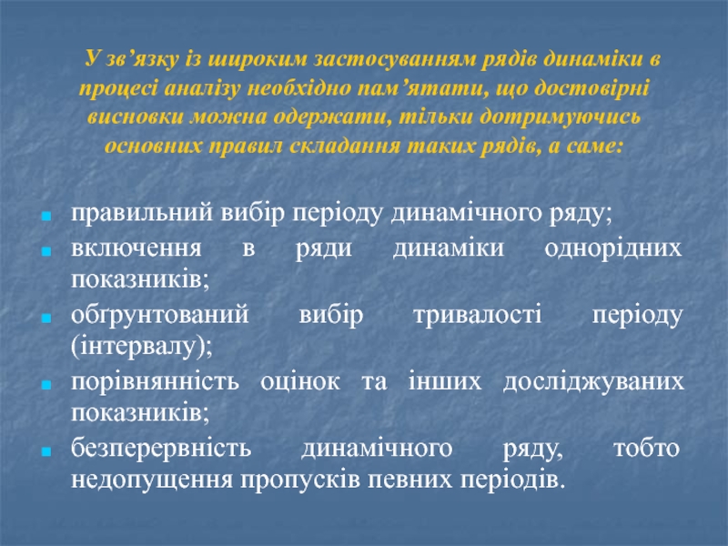 безперервність динамічного ряду, тобто недопущення пропусків певних періодів.