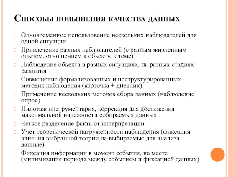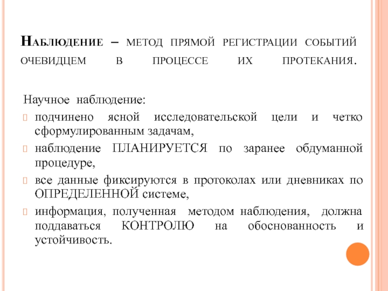 информация, полученная методом наблюдения, должна поддаваться КОНТРОЛЮ на обоснованность и устойчивость.