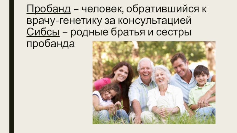 Слайд 15Пробанд – человек, обратившийся к врачу-генетику за консультацией