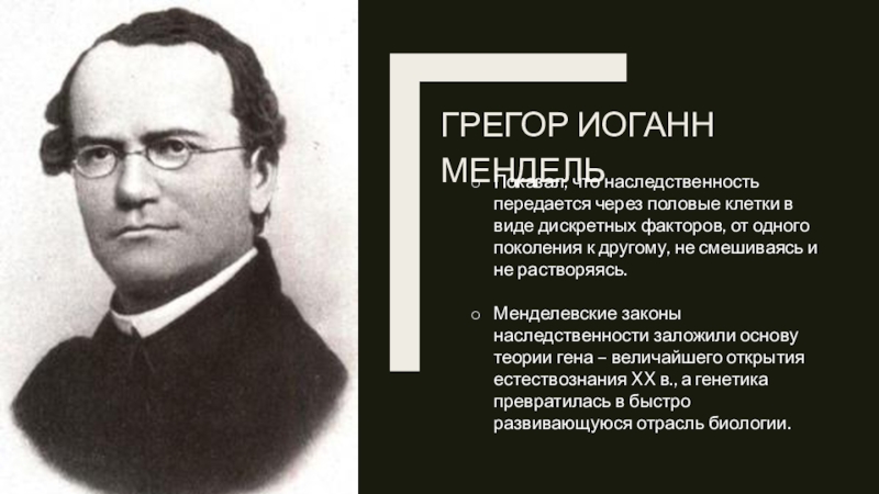 Слайд 5ГРЕГОР ИОГАНН МЕНДЕЛЬ