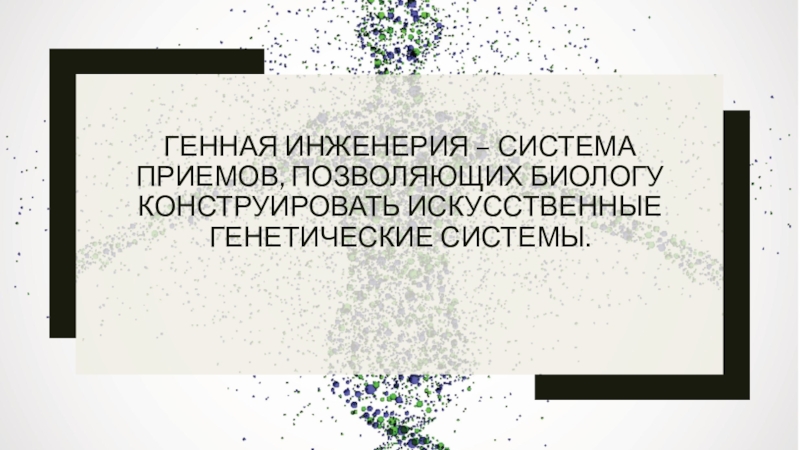 Слайд 11Генная инженерия – система приемов, позволяющих биологу конструировать искусственные генетические