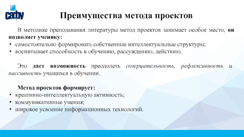 Слайд 5Преимущества метода проектов