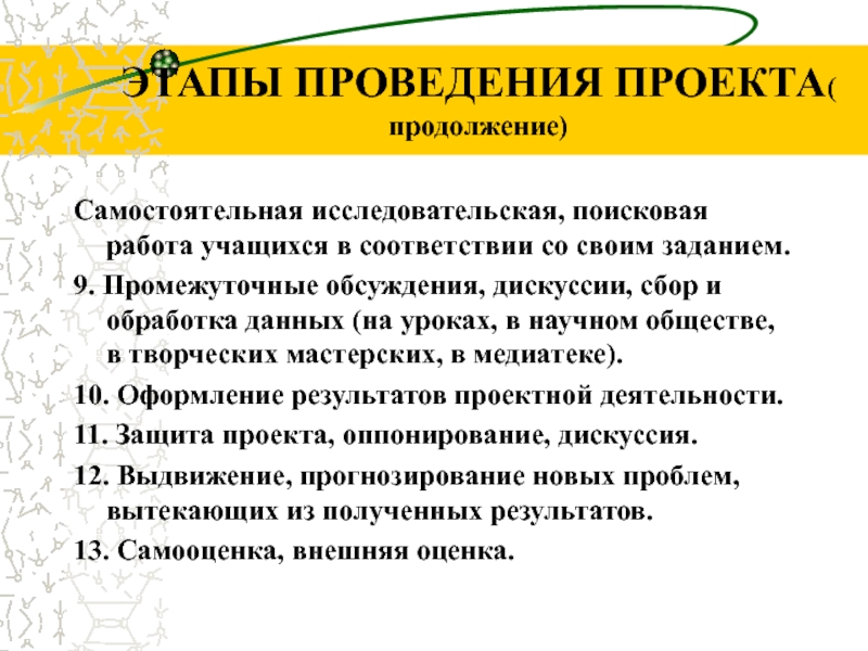 Слайд 20ЭТАПЫ ПРОВЕДЕНИЯ ПРОЕКТА( продолжение)