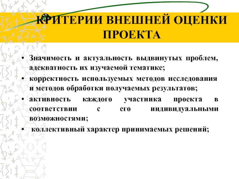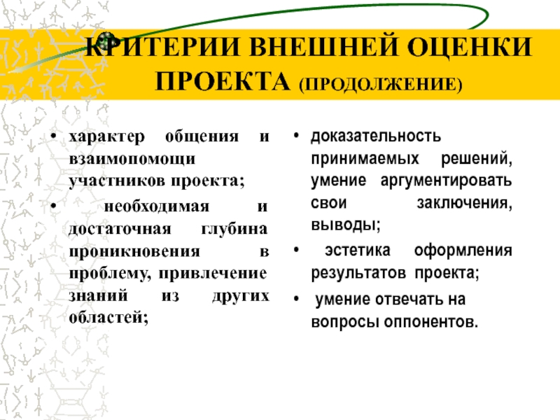 Слайд 25КРИТЕРИИ ВНЕШНЕЙ ОЦЕНКИ ПРОЕКТА (ПРОДОЛЖЕНИЕ)