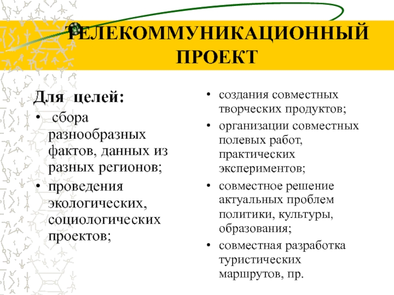 Слайд 21ТЕЛЕКОММУНИКАЦИОННЫЙ ПРОЕКТ