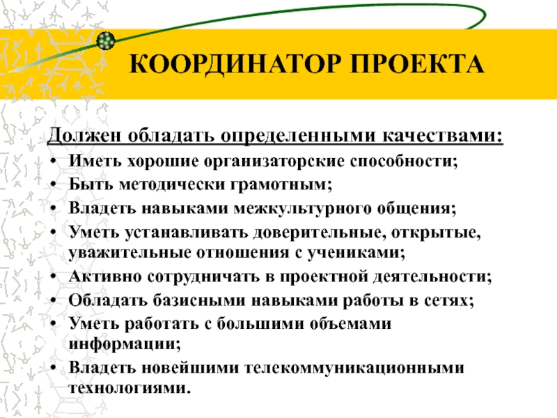 Слайд 26КООРДИНАТОР ПРОЕКТА