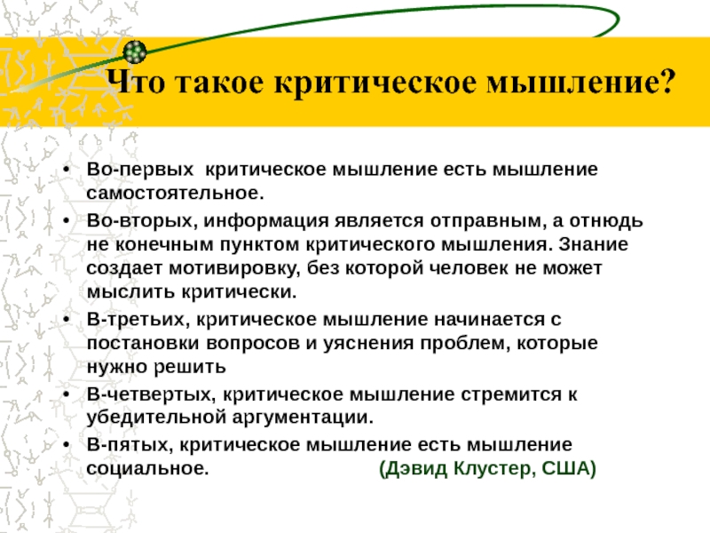 информация является отправным, а отнюдь не конечным пунктом критического мышления.