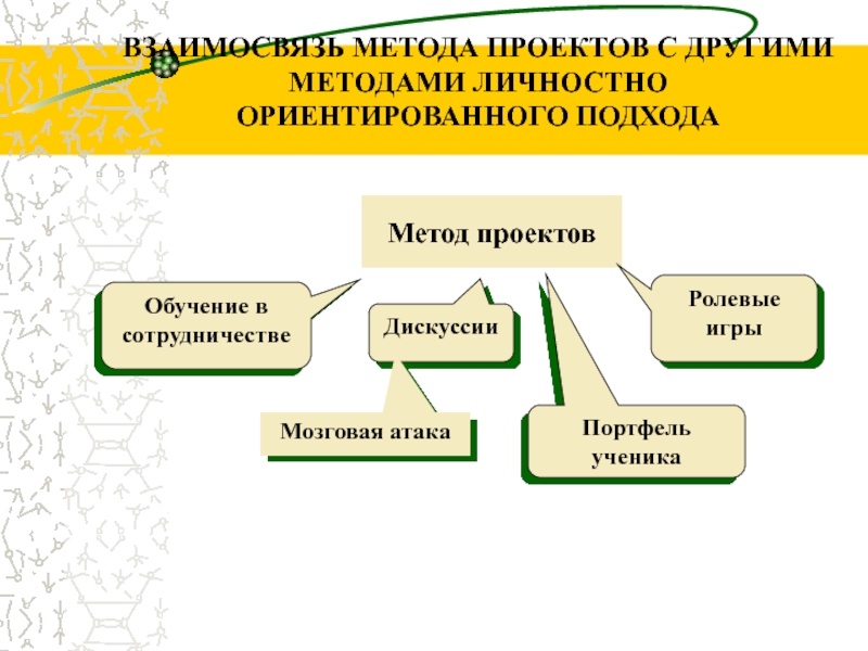 Слайд 10ВЗАИМОСВЯЗЬ МЕТОДА ПРОЕКТОВ С ДРУГИМИ МЕТОДАМИ ЛИЧНОСТНО ОРИЕНТИРОВАННОГО ПОДХОДА