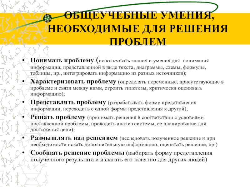 Слайд 6 ОБЩЕУЧЕБНЫЕ УМЕНИЯ, НЕОБХОДИМЫЕ ДЛЯ РЕШЕНИЯ ПРОБЛЕМ