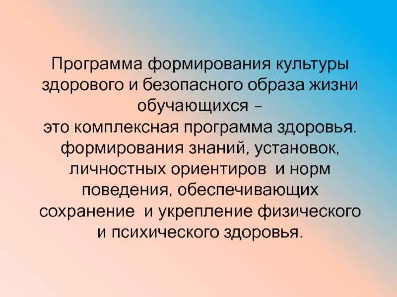 это комплексная программа здоровья. формирования знаний, установок, личностных ориентиров и