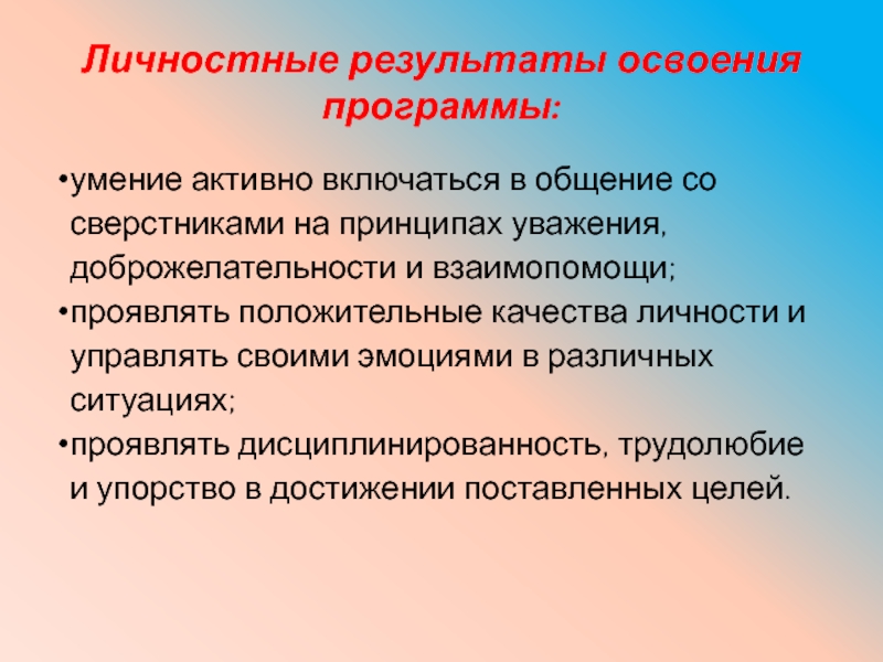 проявлять дисциплинированность, трудолюбие и упорство в достижении поставленных целей.