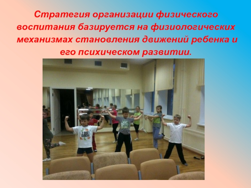 Слайд 11Стратегия организации физического воспитания базируется на физиологических механизмах становления движений