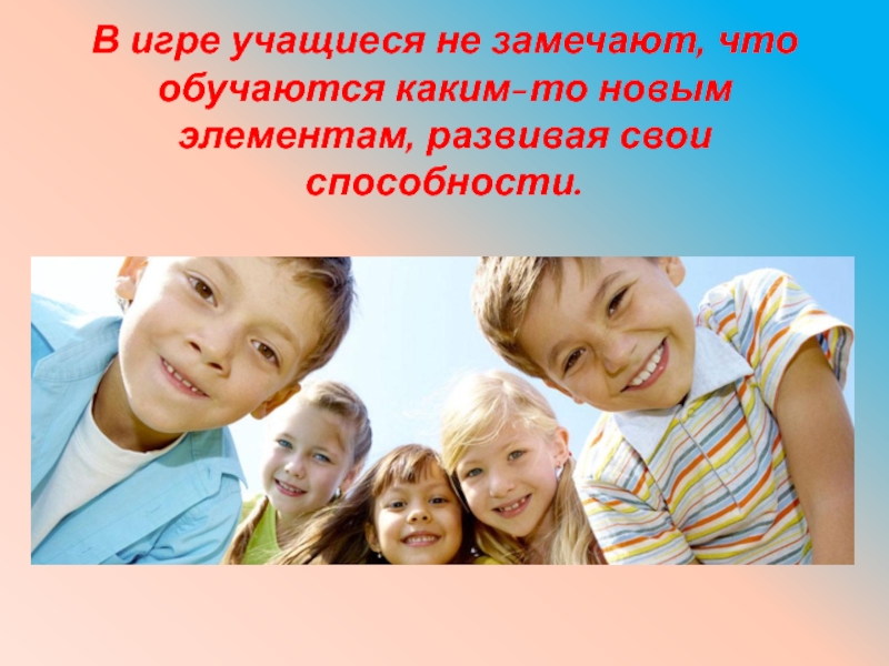 Слайд 26В игре учащиеся не замечают, что обучаются каким-то новым элементам,