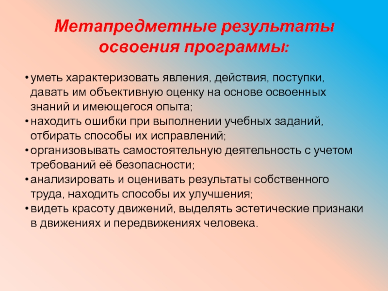 объяснять технику выполнения двигательных действий, находить ошибки и исправлять их;