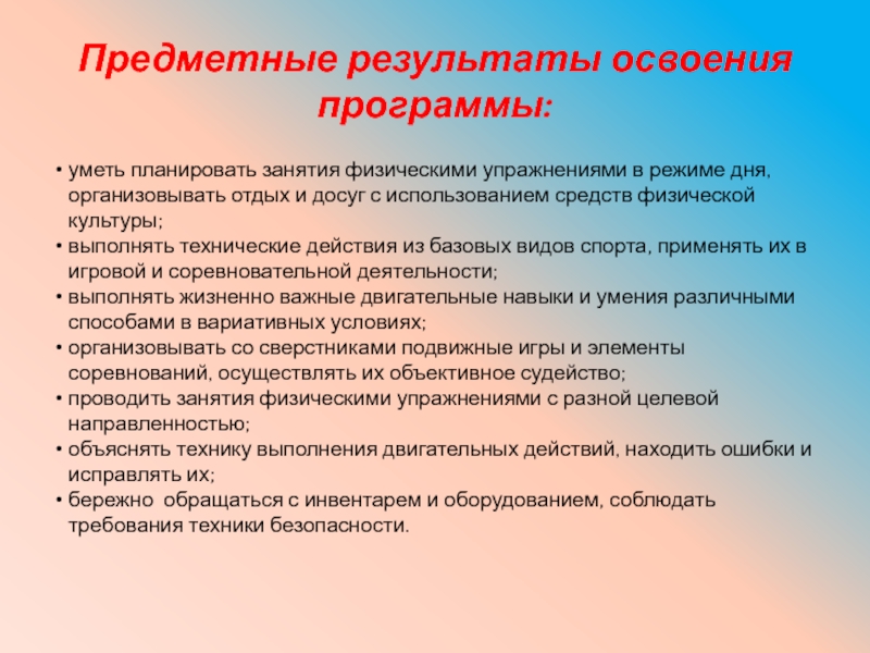 бережно обращаться с инвентарем и оборудованием, соблюдать требования техники безопасности.