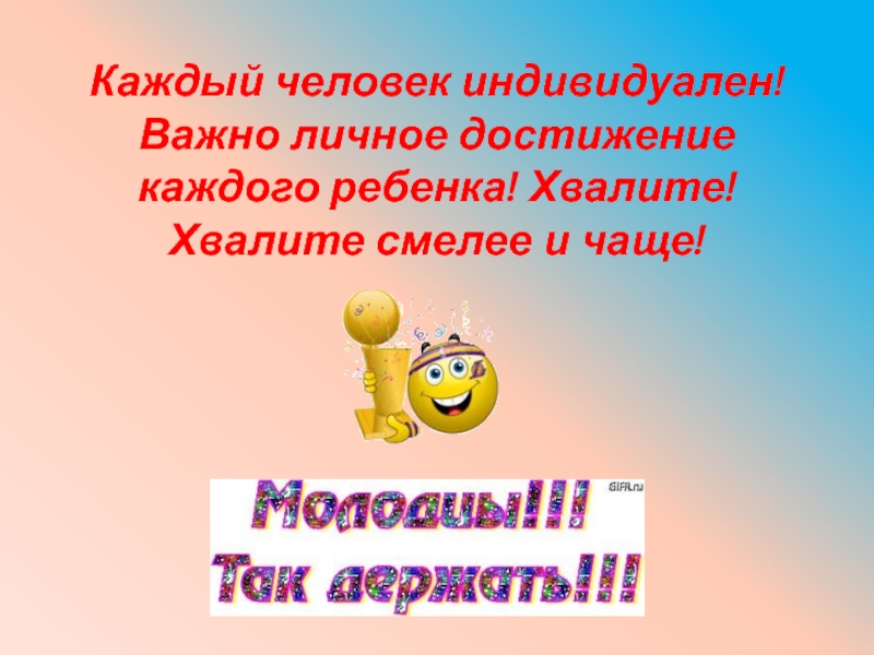 Важно личное достижение каждого ребенка! Хвалите! Хвалите смелее