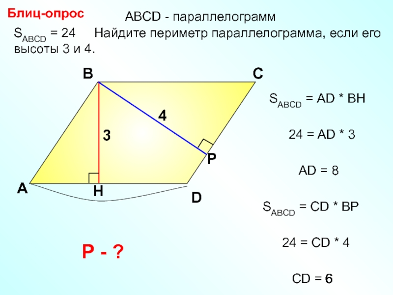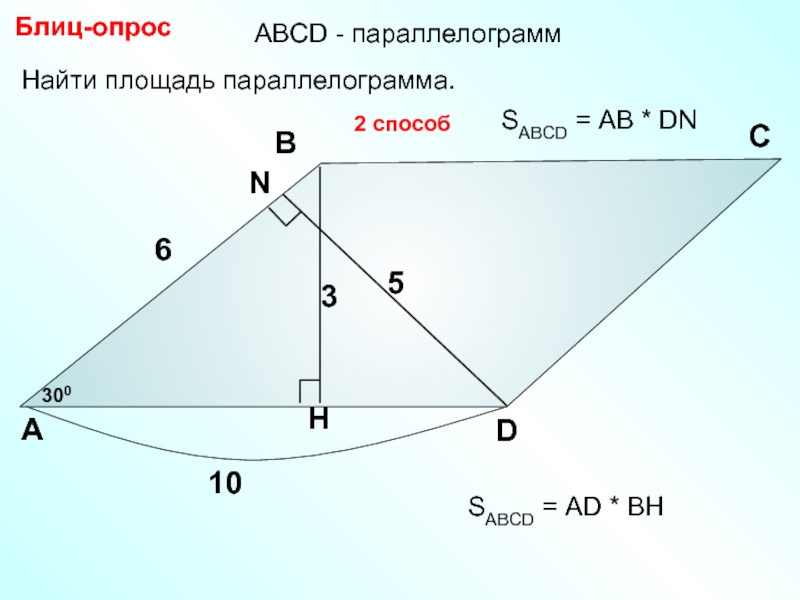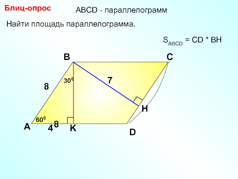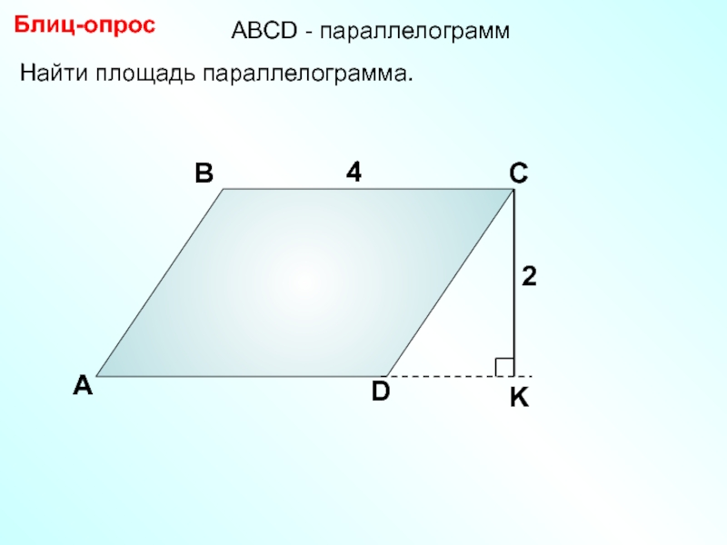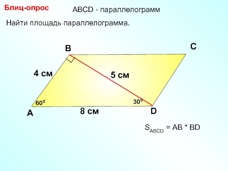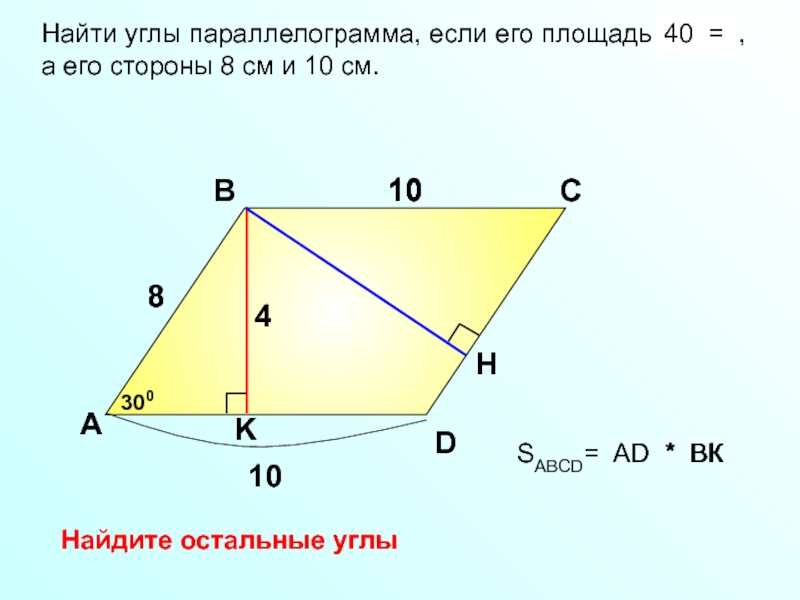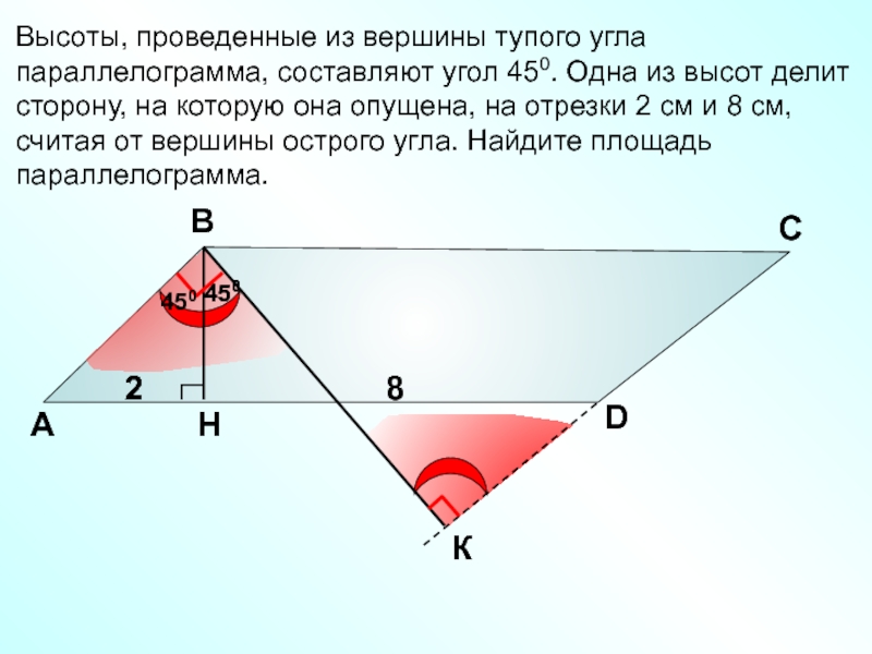 Эти свойства помогут нам получить формулу для вычисления площади параллелограмма.