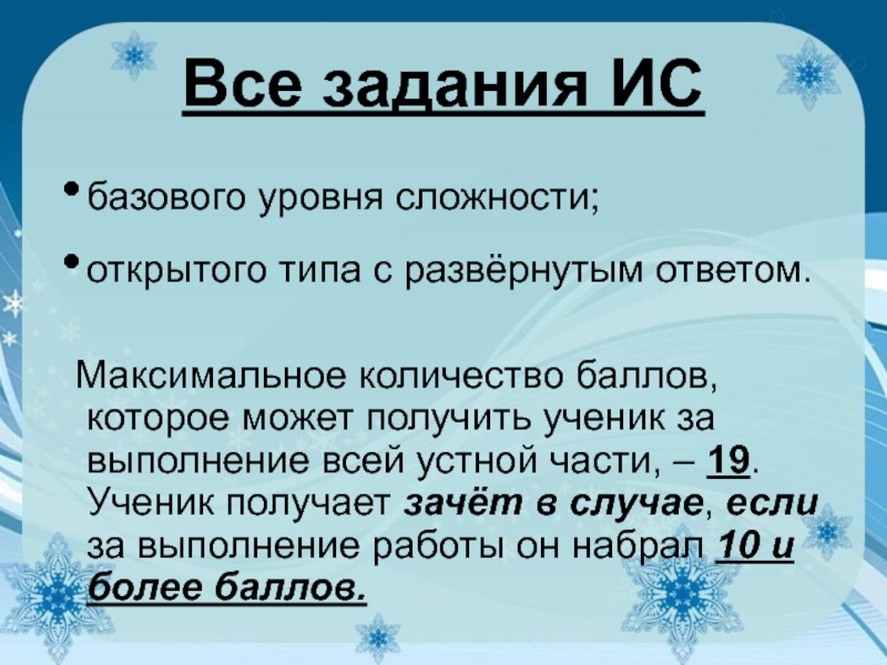 части, – 19. Ученик получает зачёт в случае, если за выполнение работы он набрал 10 и более баллов.