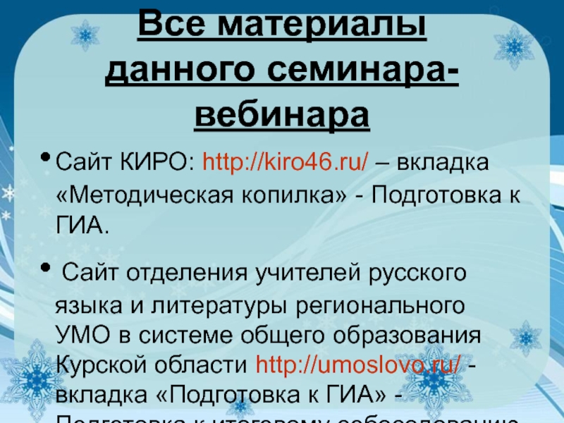 регионального УМО в системе общего образования Курской области http://umoslovo.ru/ - вкладка «Подготовка к ГИА» - Подготовка к итоговому собеседованию