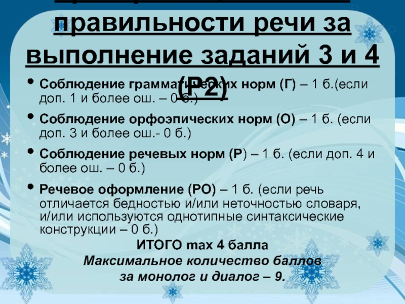 Слайд 28Критерии оценивания правильности речи за выполнение заданий 3 и 4