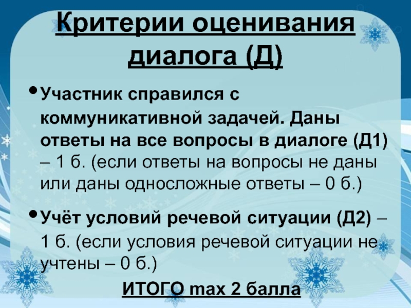 Учёт условий речевой ситуации (Д2) – 1 б. (если условия речевой ситуации не учтены – 0 б.)