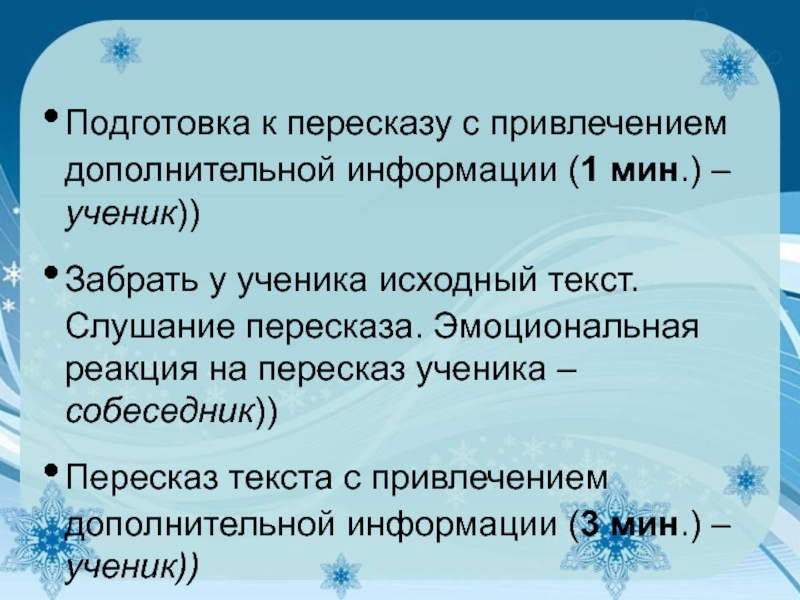Пересказ текста с привлечением дополнительной информации (3 мин.) – ученик))