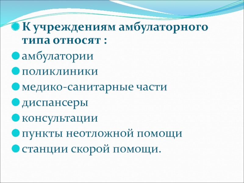 Слайд 8К учреждениям амбулаторного типа относят :