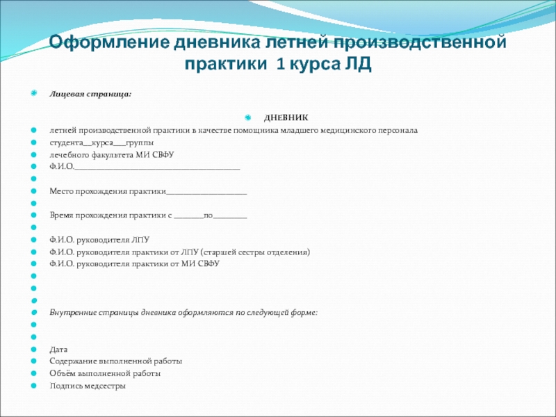 Слайд 12Оформление дневника летней производственной практики 1 курса ЛД