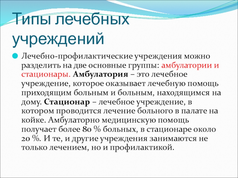 Слайд 7Типы лечебных учреждений