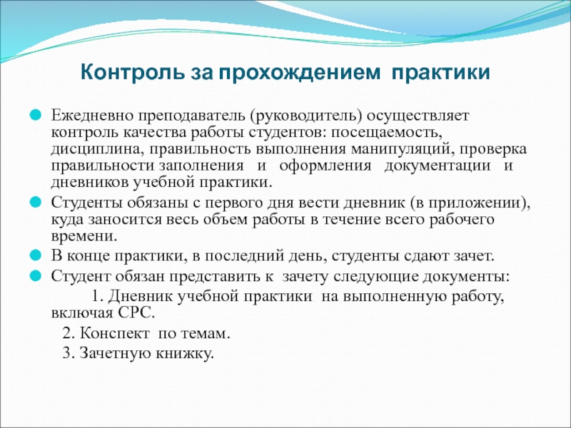 Слайд 11Контроль за прохождением практики