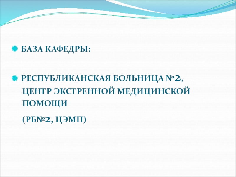 на базе обучающей кафедры (ОХТО и МК) – Республиканская больница