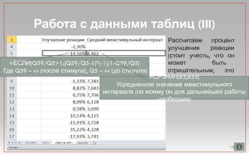 Где Q59 – vv (после стимула), Q5 – vv (до стимула)