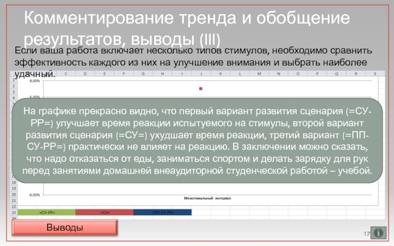 Если вы выбрали один стимул, этот график для вас конечен. Опишите его (далее).