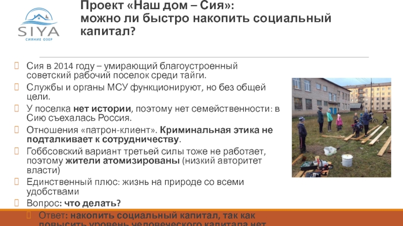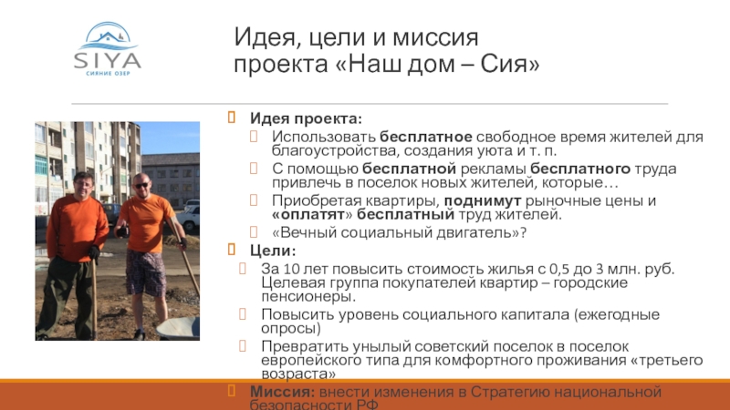 Проект «Наш дом – Сия» не зависит от органов власти