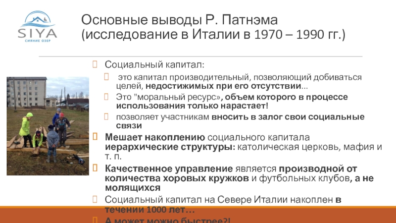 Социальный капитал на Севере Италии накоплен в течении 1000 лет…