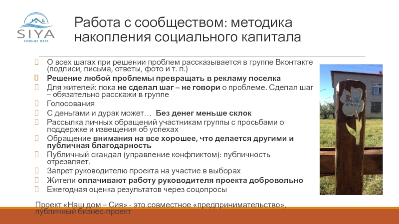 Слайд 9Работа с сообществом: методика накопления социального капитала