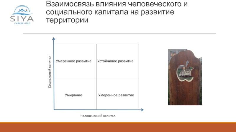 Слайд 5Взаимосвязь влияния человеческого и социального капитала на развитие территории