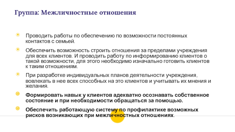 Обеспечить возможность строить отношения за пределами учреждения для всех