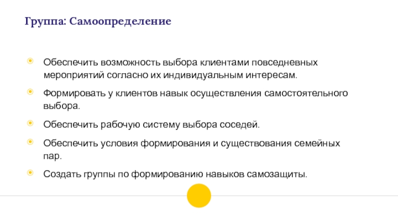 Формировать у клиентов навык осуществления самостоятельного выбора.