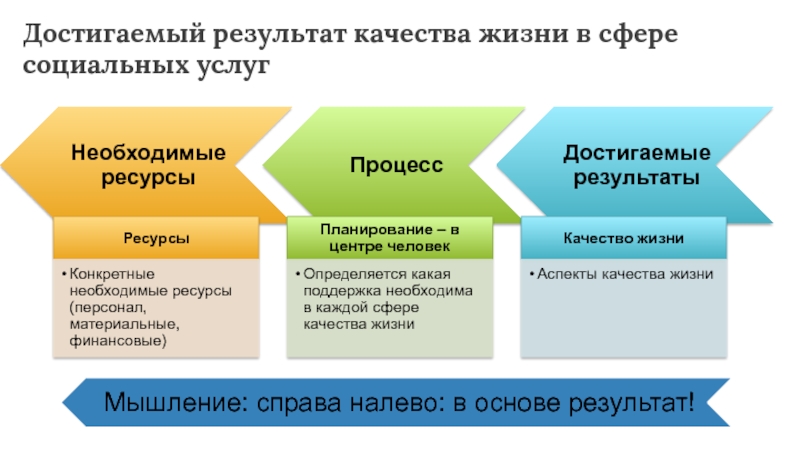 Слайд 10Достигаемый результат качества жизни в сфере социальных услуг