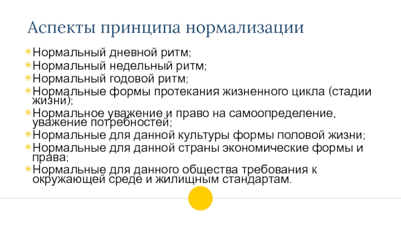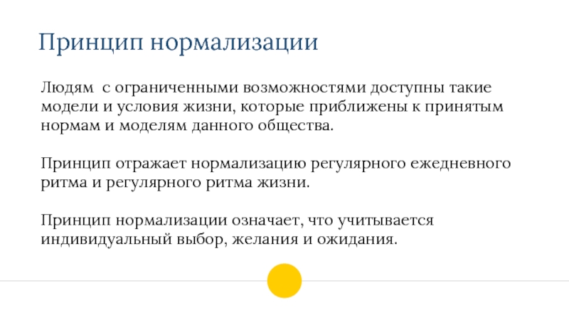 Принцип нормализации означает, что учитывается индивидуальный выбор, желания и ожидания.
