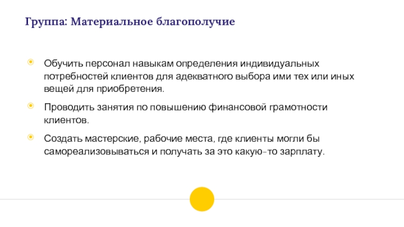 Создать мастерские, рабочие места, где клиенты могли бы самореализовываться и получать за это какую-то зарплату.