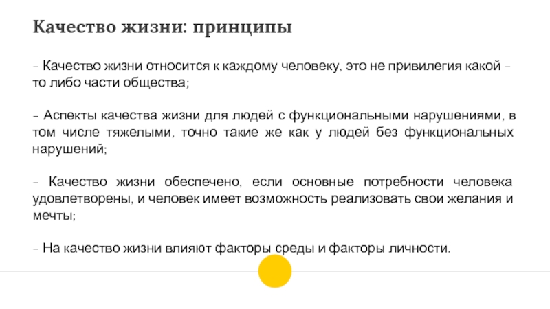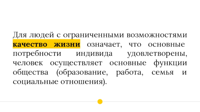 Слайд 4Для людей с ограниченными возможностями качество жизни означает, что основные