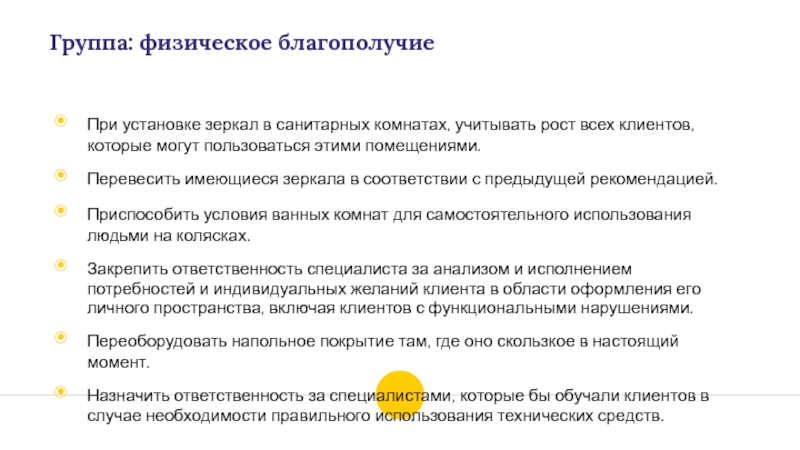 Приспособить условия ванных комнат для самостоятельного использования людьми на колясках.